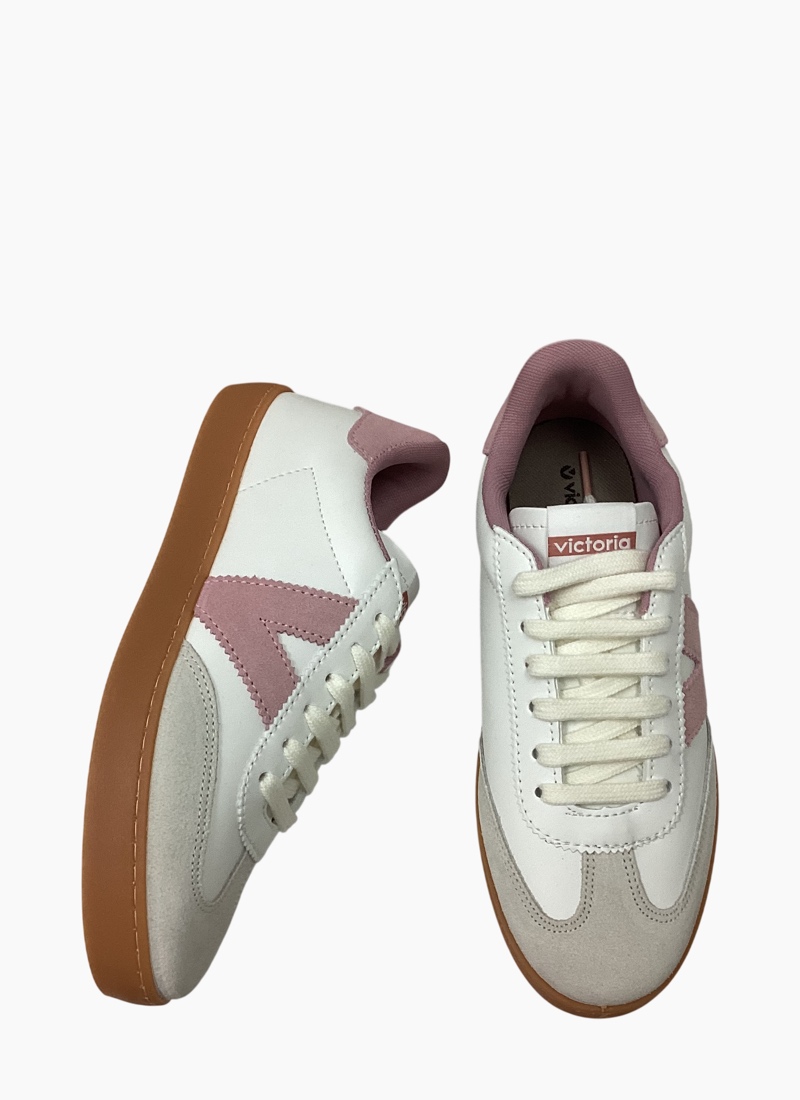 Take your style up a notch with the Victoria 1 126206 sneakers. Designed to stand out, these sneakers feature premium suede detailing and the brand’s signature bold V logo for a sleek, modern finish. The crisp white upper is beautifully complemented by soft rose pink accents, adding a subtle pop of colour to any outfit.Lace them up for a secure fit and enjoy all-day comfort, while the durable gum sole provides excellent grip and traction. Effortlessly versatile and easy to style, these sneakers are a must-have addition to your footwear collection.