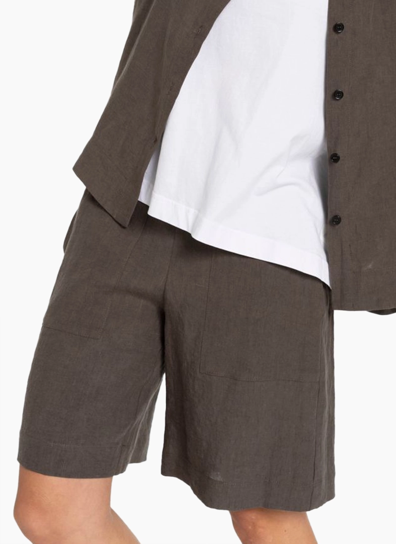 Flat front , elastic back, pockets