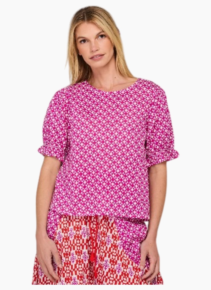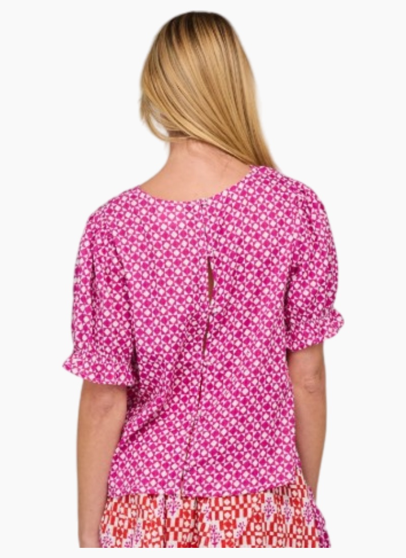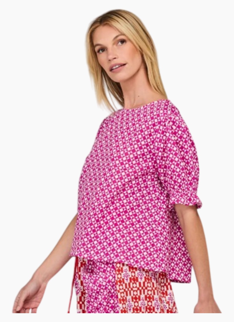 The Boom Shankar Dasha Top is your new summer essential with super cute puff sleeve detail. 100% cotton, elasticated puff sleeves that sit above the elbow, round neckline and back opening with button detail. The contrast of patterns creates a vibrant clash that feels daring yet cohesive—a modern nod to Italian street style that’s made for the spotlight.