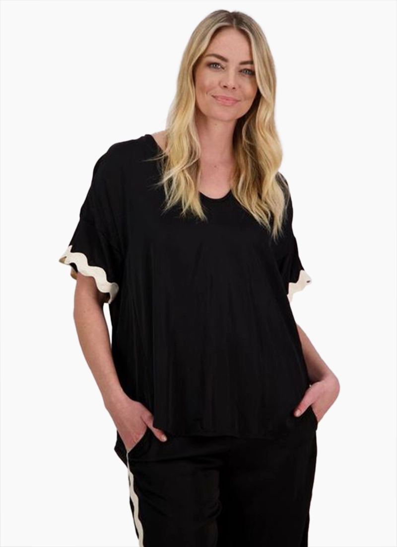 An elegant top, Potter has a flattering soft v neck and stunning contrast wave rikrak sleeves. The shaped hem hangs softly if worn out. Gorgeous with a pair of your favourite jeans and if you love to match like we do, pair with the Poppy skirt. Proudly made in New Zealand.
