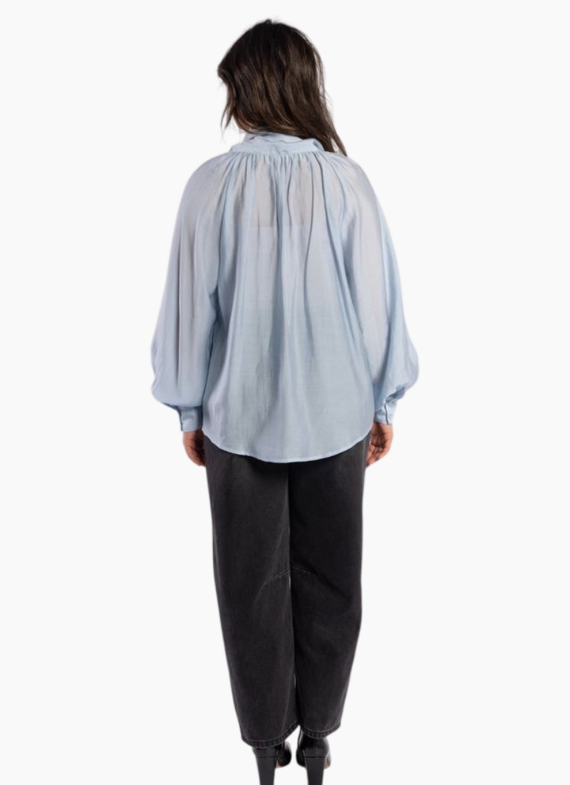 Introducing the Hay Blouse Powder Blue from Drama the Label. This airy powder blue shirt-blouse blends feminine detail with contemporary ease for a refined everyday look.